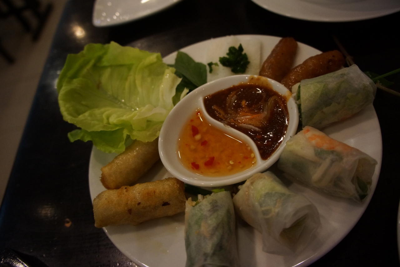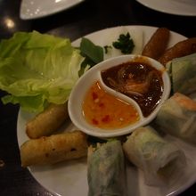 春巻きの盛り合わせ(生春巻きとか揚げ春巻きとか)も注文したのですが、こちらは普通だったかな。