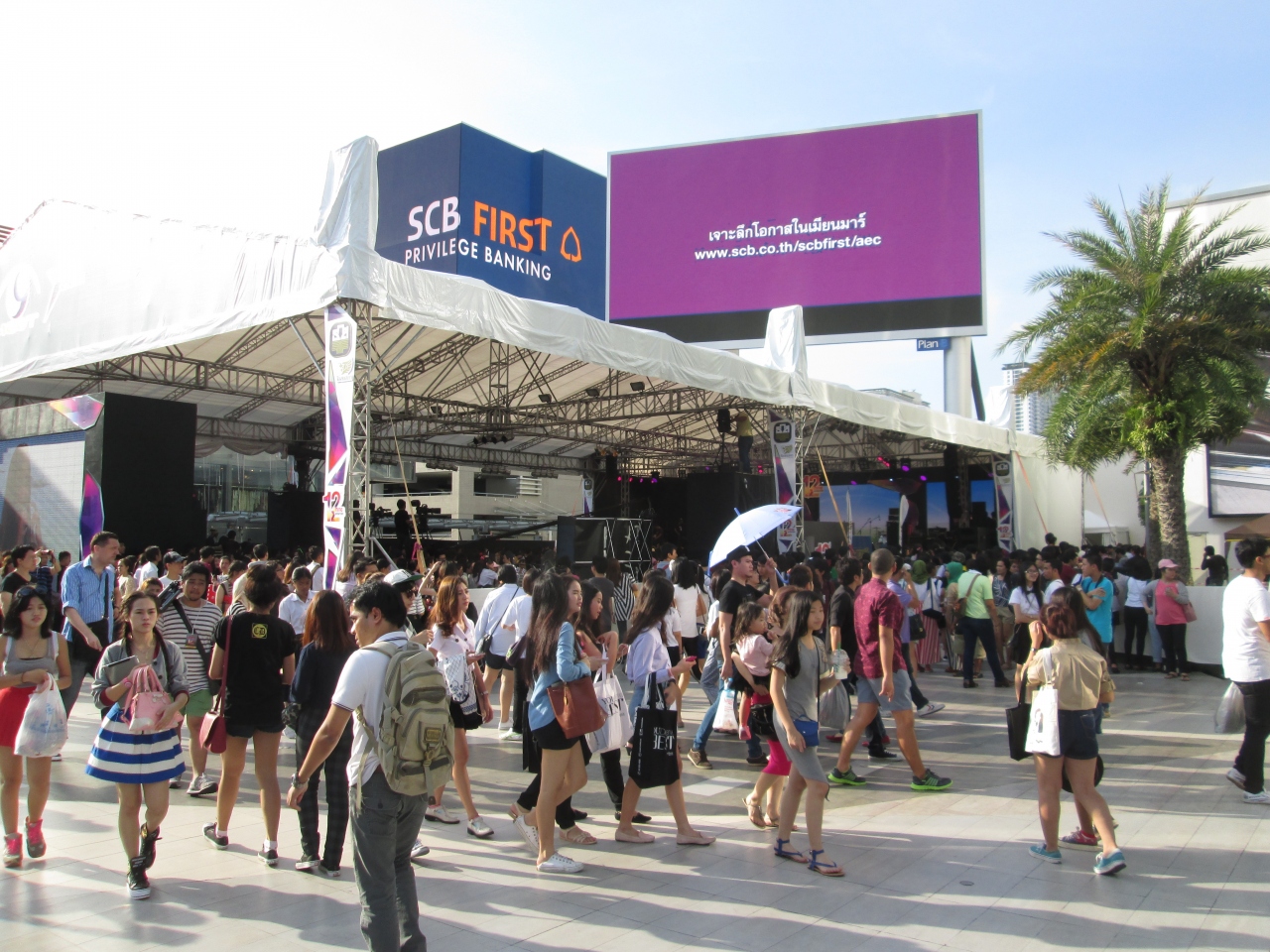 BTSサイアム駅を下車してすぐのところにあります。週末は特設会場が設けられイベントが開催されています。9月の土曜日はコンサートが行われていました。サイアム駅付近ではおそらくタイの芸能人が来ており、大きな人だかりができていました。