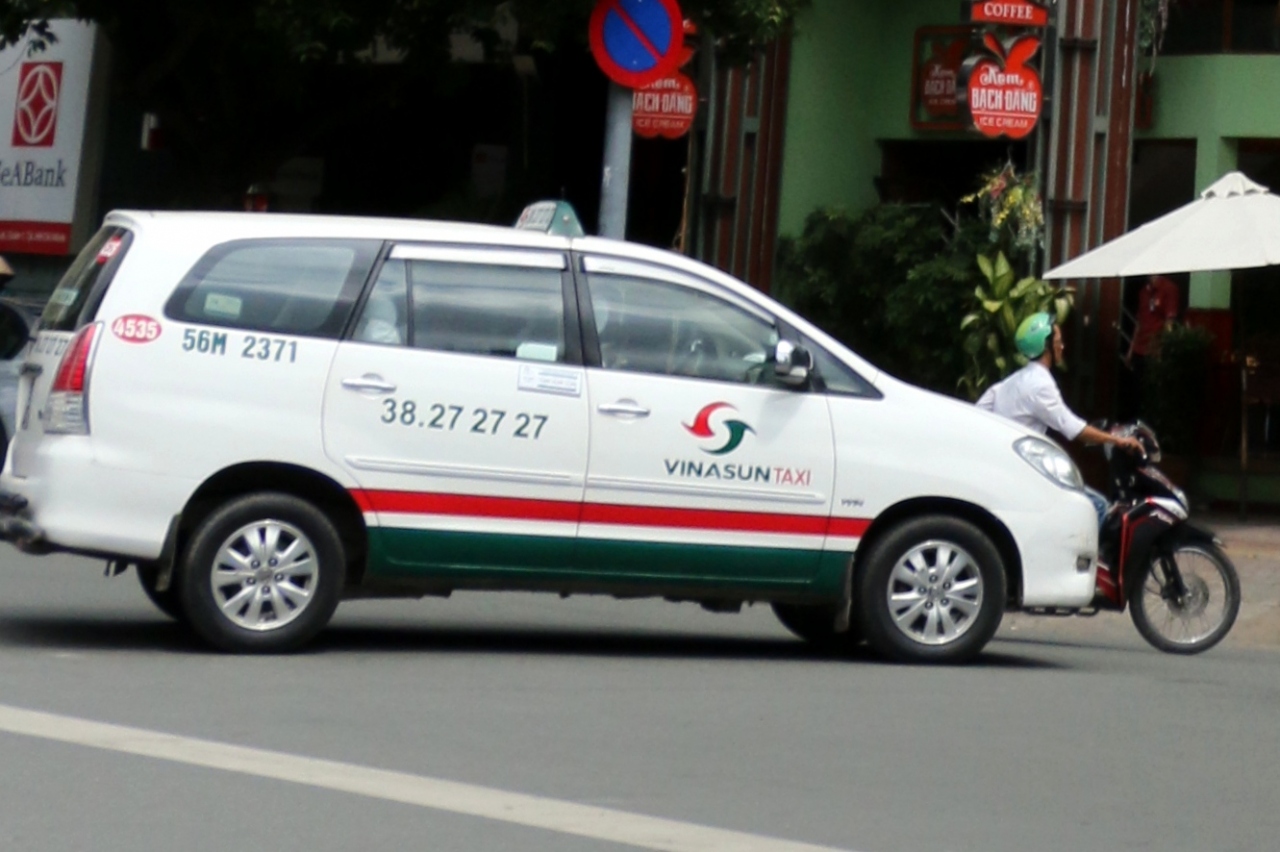空港→市内は、空港出口を出て一番左奥に行くとVINASUNタクシー乗場がありますが、どの旅行者もVINASUNタクシーを利用しようとごった返す事もあります。(到着したのが夕方だったので、タクシーに乗車するのが大変でした)大人しく待っていてはなかなか乗車できません。係の人を見つけ「ヴィナサンタクシー!」と伝えましょう。でも、順番はあって無いに等しい(笑)係の人は乗車時にタクシーNoを書いた紙を渡してくれます。それと、空港への行き帰り時には料金にプラスして10000VNDがかかります。(2014年現在。これは“ぼったくり”ではありません。但しチャーター時は料金に含まれている場合も有り)