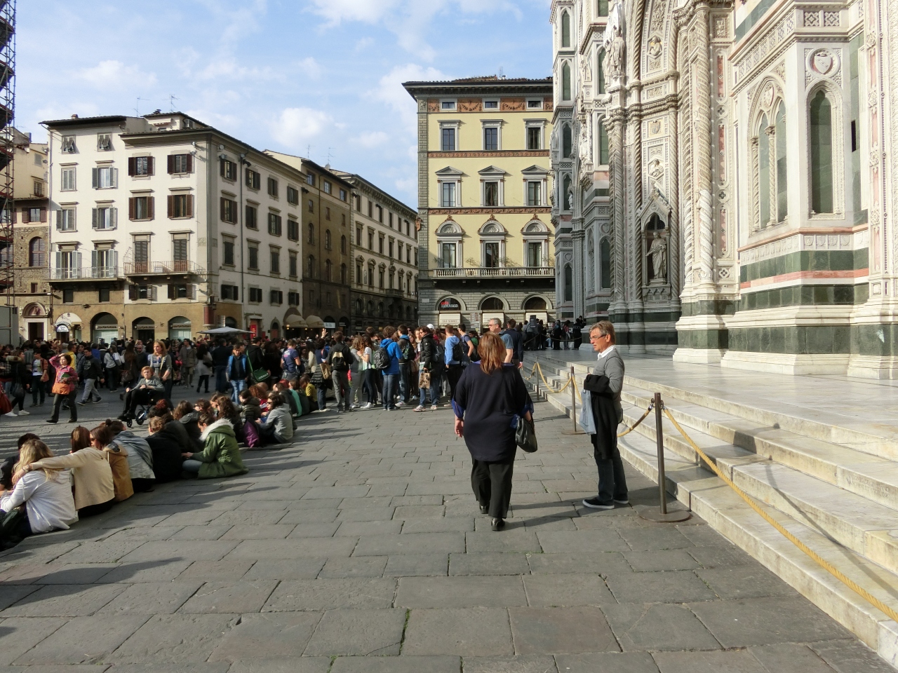 観光客がたむろしてドゥオモやジョットの鐘楼を眺めたり、
