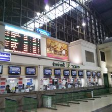 ドーム状の広い建物に、待合所とチケット売場、インフォメーション、レストラン、売店が備わっています。タイの王様の写真が大きく飾られています。