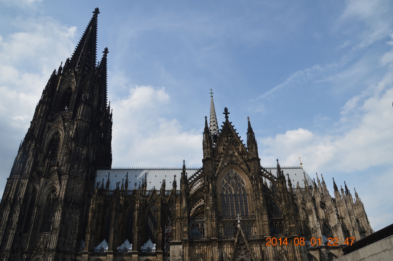 2014.8.1にフランクフルトからDBで日帰りしました。駅を降りると目の前が壮大な大聖堂で、正面の緩やかな階段には多くの人が腰かけていました。あまりにも大きな聖堂なのでカメラのレンズを10mmの超広角に交換して、ようやく全景が入るほどでした。裏手の広場に面してガイドブックでも紹介しているレストラン・フリュー アムドムがあり、ここでビール、ソーセージを食べて、St.マリア教会を訪れました。再び大聖堂に戻り、隣接する広場でビール片手にゆっくりとして、ケルン駅からICEでフランクフルトに戻りました。現地では「コロン」の発音で、オーデコロン発祥の地を思い起こされました。