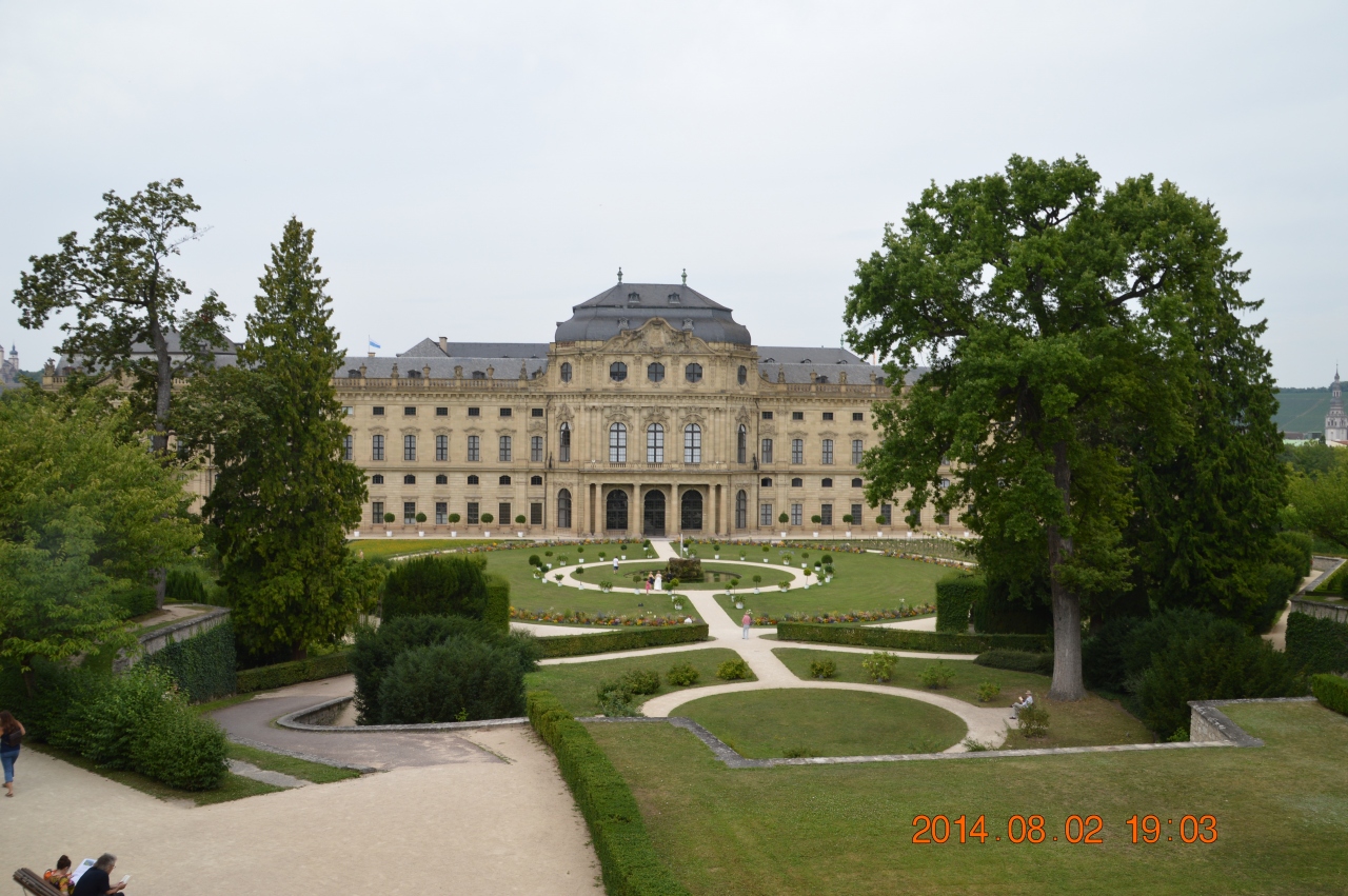 2014.8.2にフランクフルトからDBで日帰りしました。駅から大聖堂のあるマルクト広場までは歩いて30分程。ここからレジデンツに行こうとしましたが、方角を間違えて人通りの少ない真逆の方へ。出会った学生風の女性に聞いたら途中までエスコートされ大助かりしました。レジデンツはウイーンのシェーンブルン宮殿を地味にしたような感じでした。ここでも花嫁に出会い、写真をパチリ。駅までの帰りも路を間違えて、遠回りをして駅にたどり着きましたが、中心部を少し外れると出会う人が殆どいなくなるような静かな街でした。