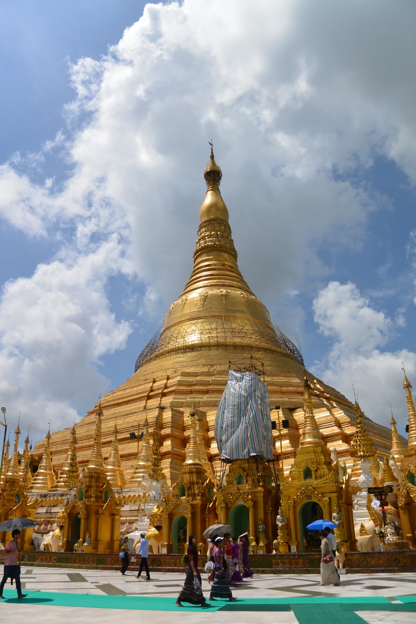 シュエダゴン・パゴダは、地震によって何度も破壊され、現在の仏塔の原型は15世紀ころ成立したと考えられています。