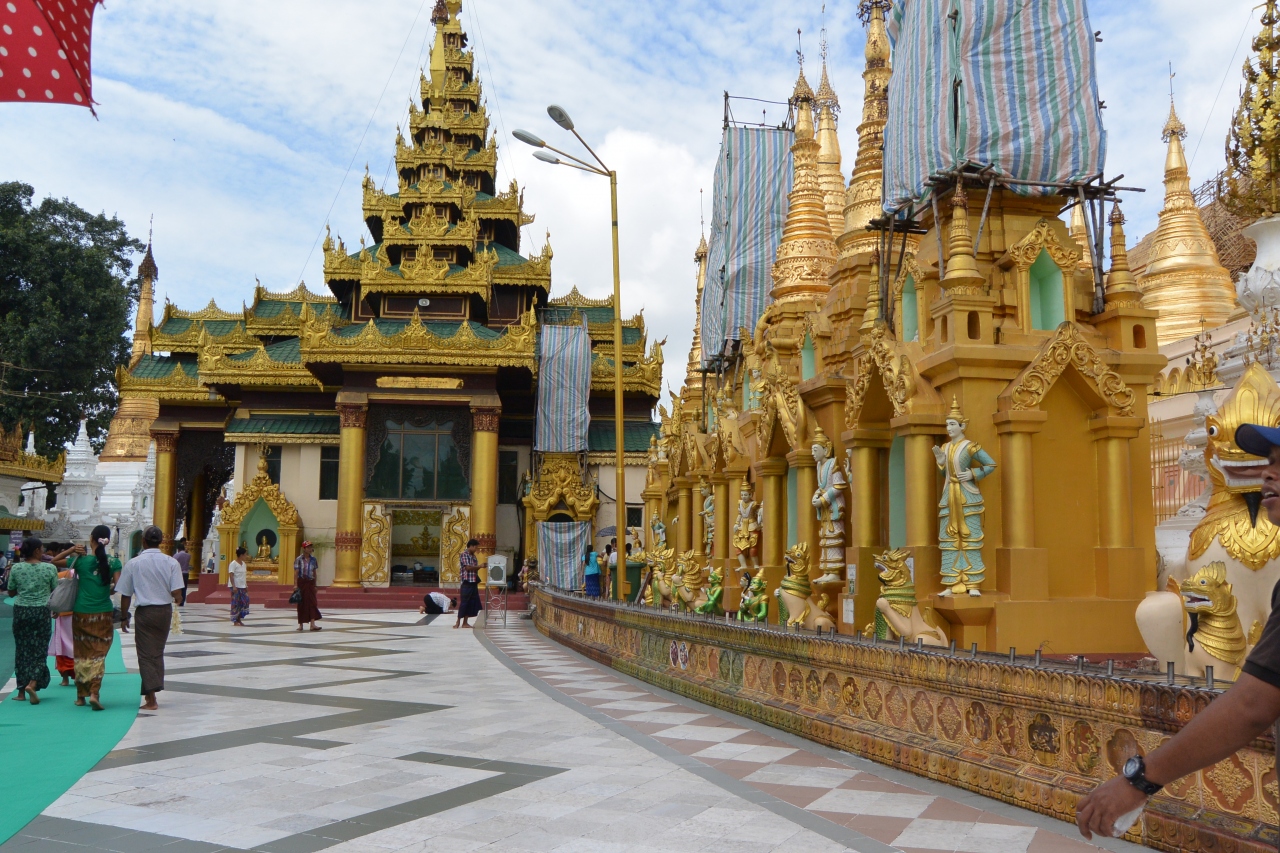 境内は高さ約100mの黄金のストゥーパを中心に60余りの仏塔や廟が林立し、自分の生まれた曜日の仏像に3~5回のお水をかけてお参りしました。