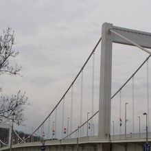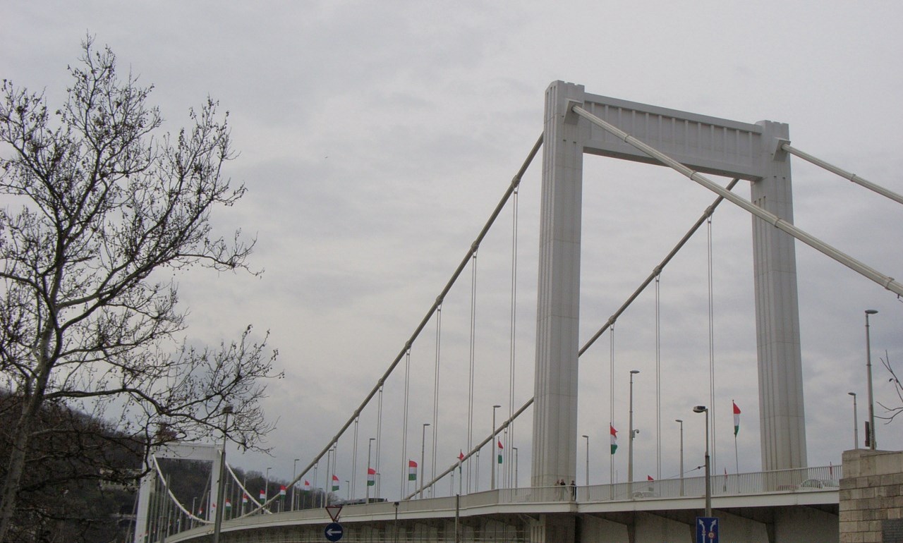 オーストリア=ハンガリー帝国の皇后エリザベートのハンガリー名エルジェーベトの名を冠した橋で、完成当初はセーチェーニ鎖橋と同じようなチェーンの吊橋だったそうですが、第二次世界大戦でドイツ軍に破壊され、現在の白いケーブル吊橋に再建されました。すぐ南の橋は皇帝フランツ・ヨーゼフ1世にちなんでフェレンツ・ヨージェフ橋と呼ばれていましたが、後に「自由橋」と改称されたことからも、いかにエリザベートがハンガリー国民に愛されていたのかがわかります。