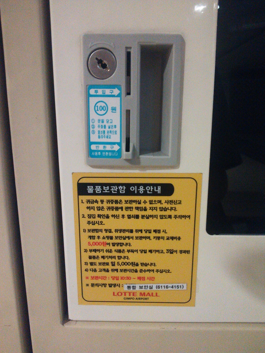 ロッテモール前のロッカーにはスーツケースが入る大きなのもありますが、ロッテマート横のは比較的小さい手荷物用なので、空港から来た場合はロッテモールに入る前に預けてしまうのをお勧めします。