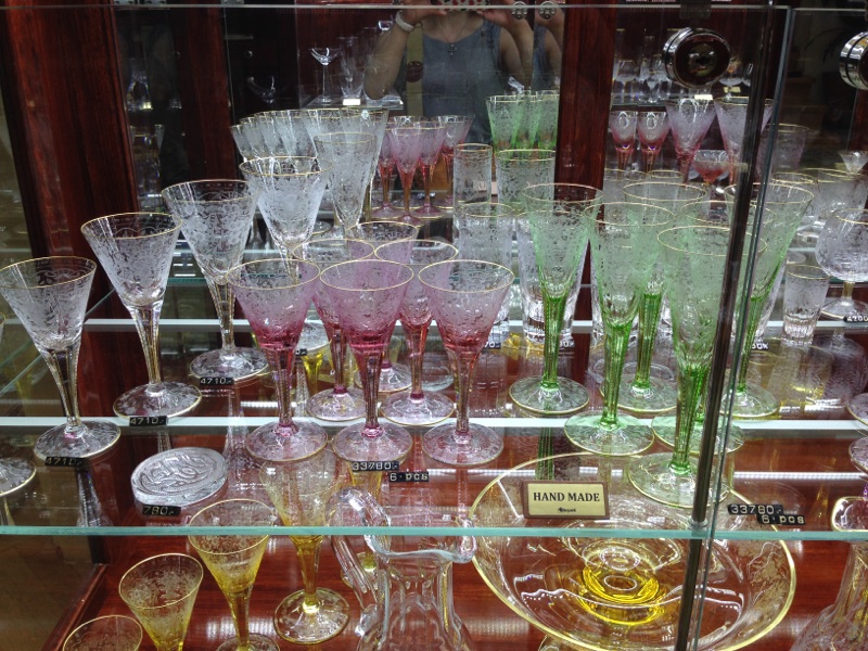 2階にはボヘミアンガラスの老舗、モーゼルのものが種類豊富に揃っています。