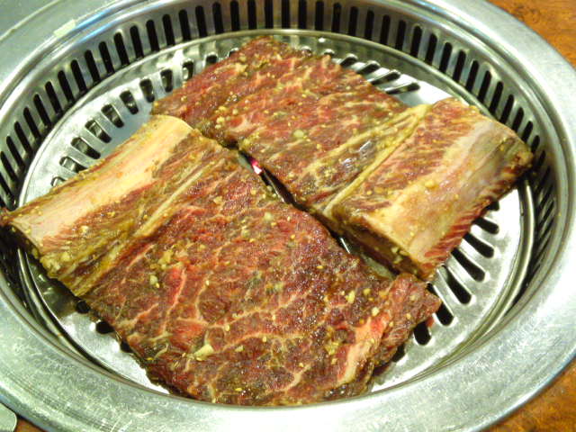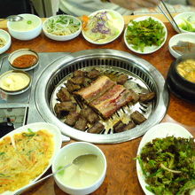 でっかいカルビは柔らかくてジューシー。おかずも一杯ついて、18000ウォンは激安です。