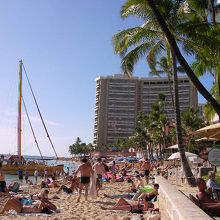 オアフに到着して、デュークカハナモク像を通り過ぎたあたりからのワイキキビーチの眺めが、ハワイに来た感が感じられて大好きです。