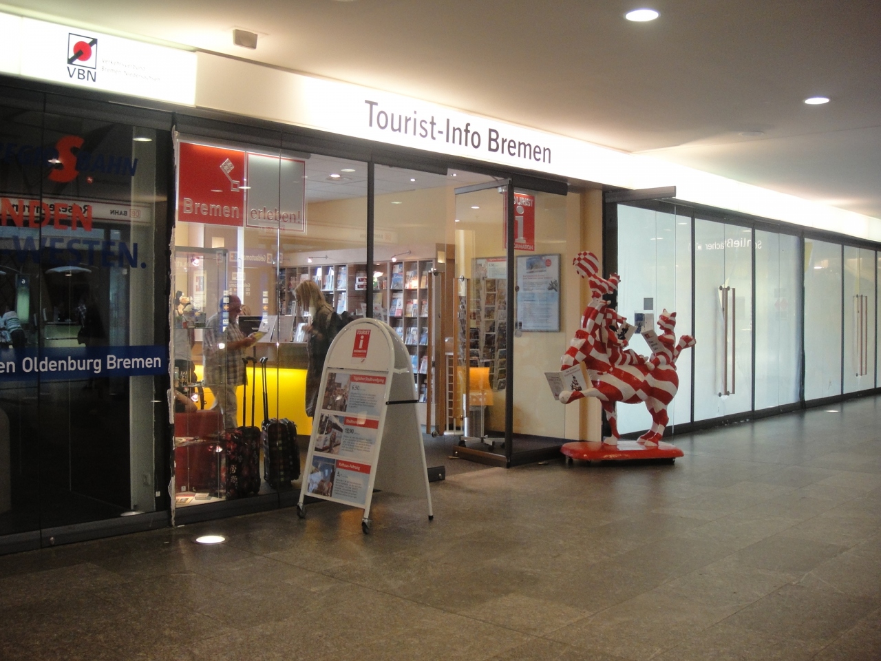 ブレーメンの駅構内にあります。無料で観光案内地図をもらえました。見どころなど聞きたかったのですが、他の方のホテル予約の対応が忙しそうで聞けずじまいでした。中ではガイドブックやポストカードなども販売しています。