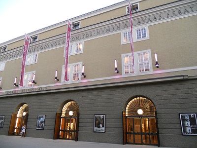 1607年に大司教のために建てられた225メートルの細長い建物で、大劇場と大ホール、馬術学校、劇場などがあります。ガイドツアーで見学できますが、時間の関係で外観のみの見学でした。ザルブルクの音楽祭のメイン会場としても有名です。