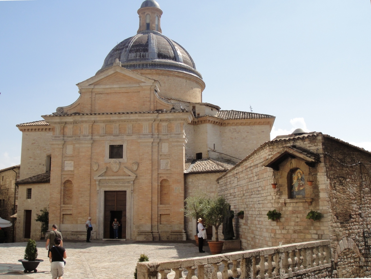 コムーネ広場を少し南に入ったところにある、大きなクーポラのある教会です。ここにはもともと聖フランチェスコの家があり、その跡地に教会が建てられたそうです。教会のわきには、聖フランチェスコの両親の像が建っています。