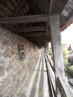各門からのぼって、城壁の通路を通ってローテンブルクの城壁の中の街全体を一周することができます。通路は細く、対向してくる方がいるとすれ違うのは無理なので、少し幅のある場所で待機する必要があります。でも、高い場所から見るローテンブルクの街並みは本当に綺麗です。私たちは1泊でしたので一周しました。