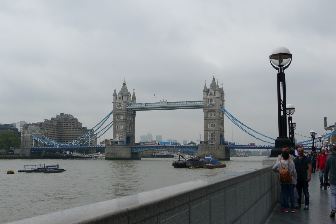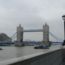 ロンドン塔に行くときに、反対側の岸から渡りました。有料ですが、橋の上の塔に登ることができ、2つの塔を繋ぐ遊歩道を歩いて渡ることができます。橋はたくさんの観光客で混雑していましたが、こちらはそれほど混んでおらず、ゆっくり眺めを楽しめて良かったです。