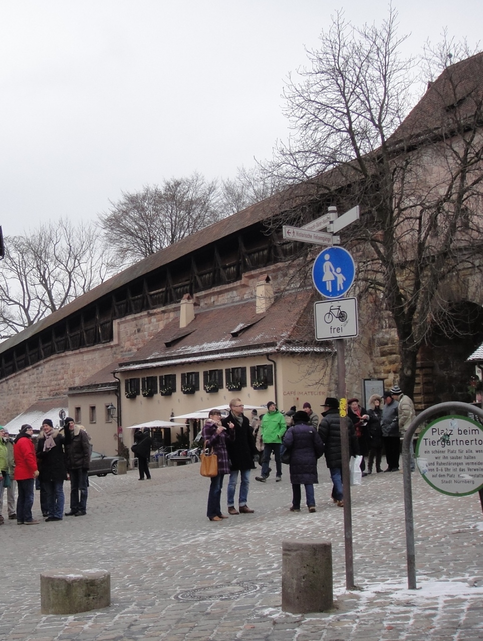 ニュルンベルクの町を守っていた市壁は、当時5kmもの長さがあったそうです。町の出入り口だった門も含めて今もかなりの部分が残っていますが、とくにカイザーブルクの西側には大きなティアゲルトナー門があって見ごたえがあります。
