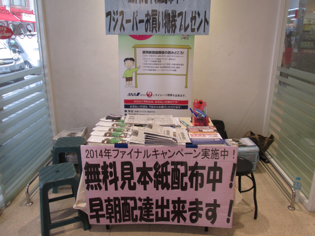 日曜日のフジスーパーは店内は混雑しレジ前には行列ができていました。店の駐車場は満車で、前の狭い道路は渋滞状態でした。しかし、日本製のカレーやアイスコーヒーは驚くほど高いです。今回も現地情報誌のWISEや読売新聞をもらってきました。