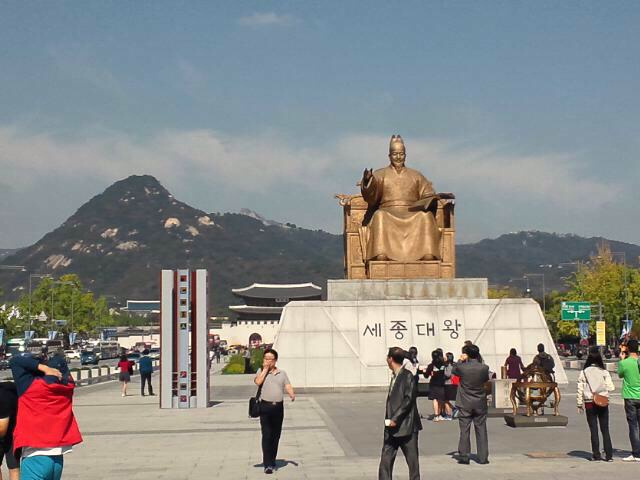 世宗大王像周辺は良く韓流ドラマに使われる場所と思います。道の真ん中に噴水とか設置されてちょっとした公園のようです。像の裏側からは地下の資料館に行かれそこでも韓国の歴史を学ぶことが出来ます。キョンボックンとセットで見られるのがいいと思います。観光時間は半日ほど掛かるのではないかと思います。