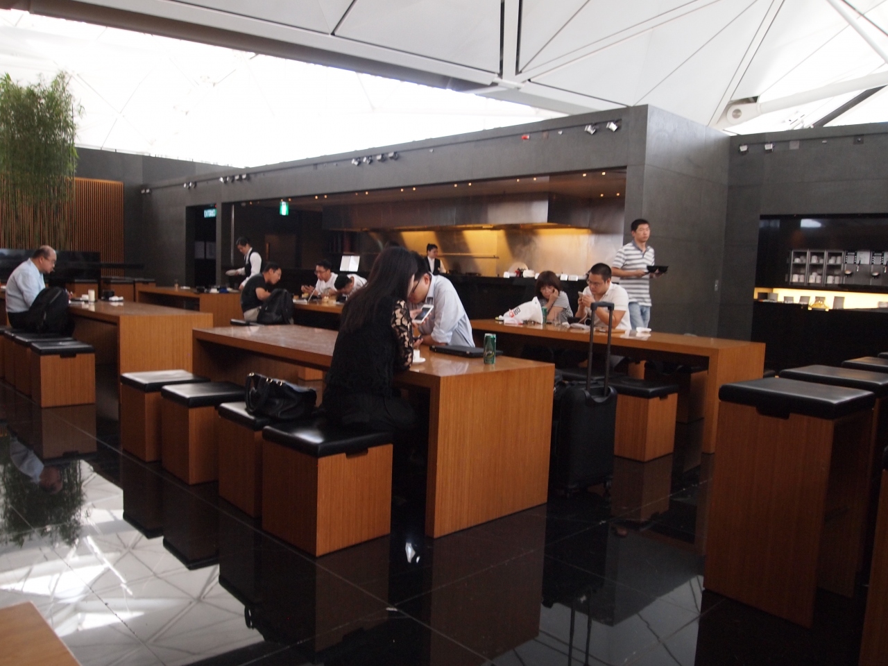 大きなラウンジで、奥のほうにはヌードルバーなどもあり
