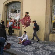 道の左右に多くのショップが軒を連ね、旧市街広場よりにはボヘミアンガラスで有名なモーゼルのお店もあります。いつも観光客らでにぎわっていて、観光客目当ての呼び込みや大道芸人などもたくさんいます。
