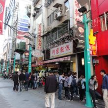 台北の若者の街、西面の一角にあります。いつも人だかりができ、皆さん立って食べています。お好みでお酢を入れています。すっかり西面の名物で、安く手軽に食べられるのが人気の秘密でしょう。大小によって料金は異なります。どろっとしたあんがかかった中華そばです。