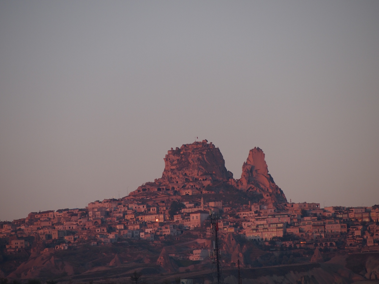 朝焼けの時間帯にホテルの近くの高台から見ると、