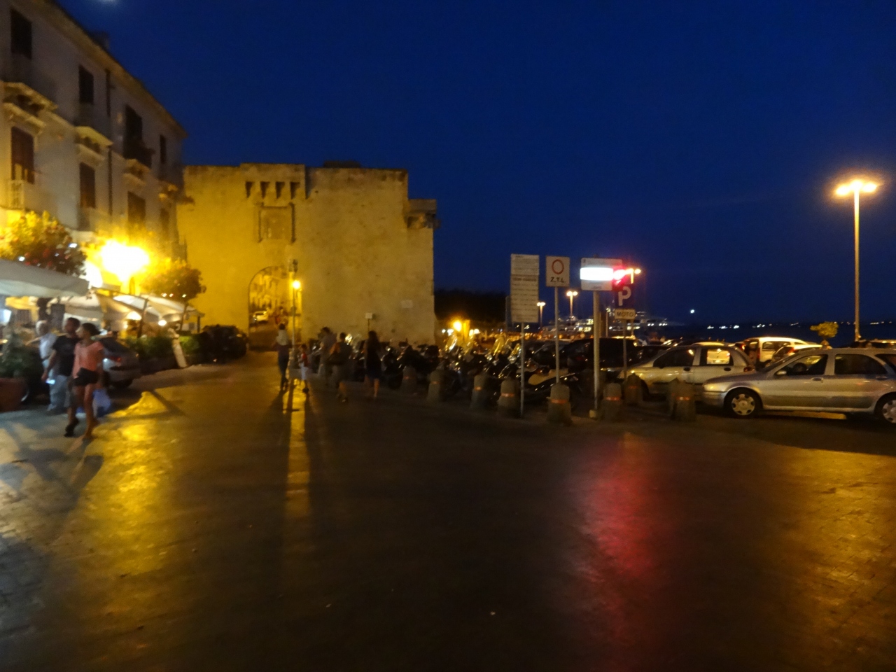 鉄道駅方面からオルティージャ島に渡り、海沿いに右折したところにある門です。海沿いにあるので、海と白い門とのコントラストは美しいものがあります。付近にはレストランも多く、終夜賑わっていました。この門目当てで行く、というよりはオルティージャ島の散策の一環としてみるところですね。