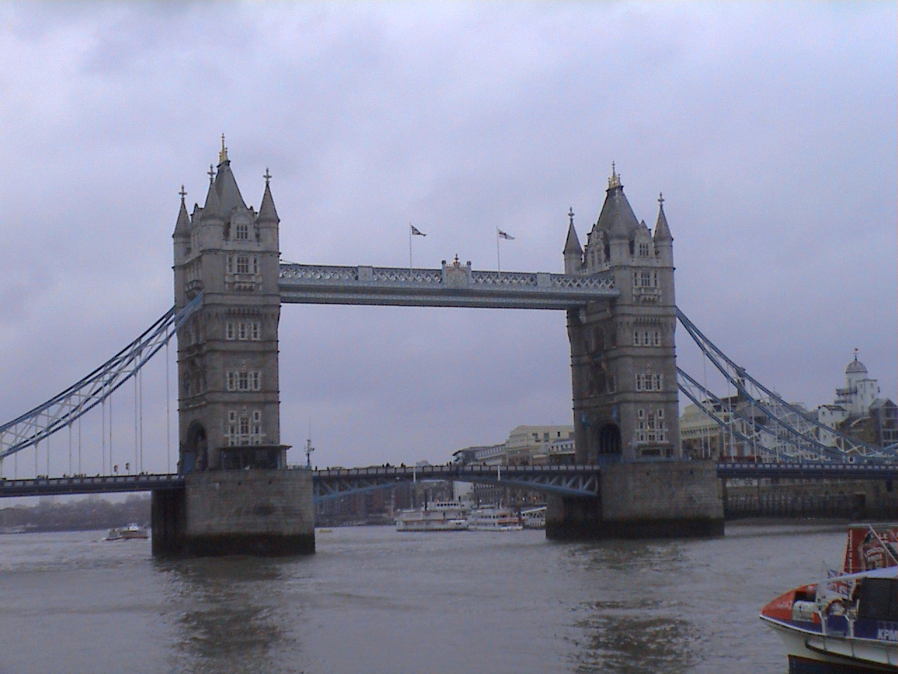 ガイドさんによると、テムズ川岸に立って、「ロンドン橋はどれでしょう?」と聞くと100人が100人、タワーブリッジを指さすそうです。本当のロンドン橋が目立たない地味な姿しているのに対して、こっちは跳ね橋でかっこいいもんね。