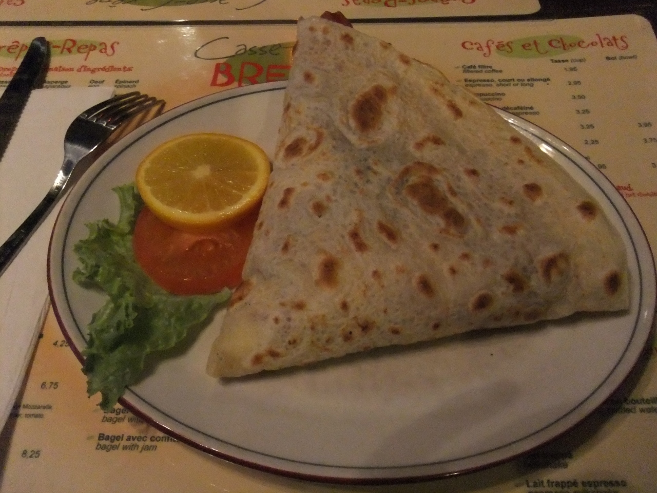 朝食にクレープを食べに行きました。ケベックでいうクレープは食事の用途が強いようで、中に入れる具材もハムや卵やチーズなどおかず的なものが多いです。ここの店のシステムは中に入れる具の種類により値段がかわります。今回は4種類を選びましたが、具も沢山で朝食にちょうど良かったです。客は日本人が多かったです。