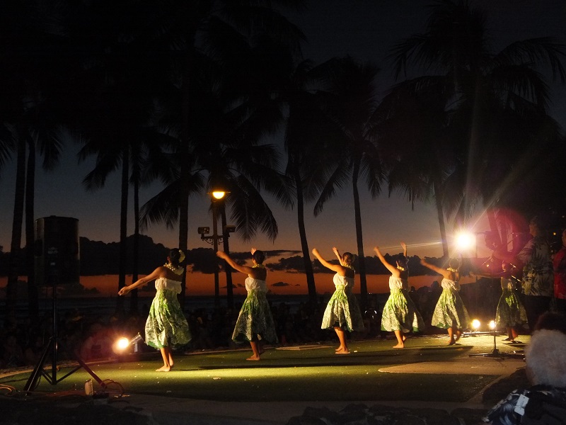 食事のあと途中から行ったので後ろの方でしたが、それでもサンセット時のショーはハワイの雰囲気が十分味わえました。