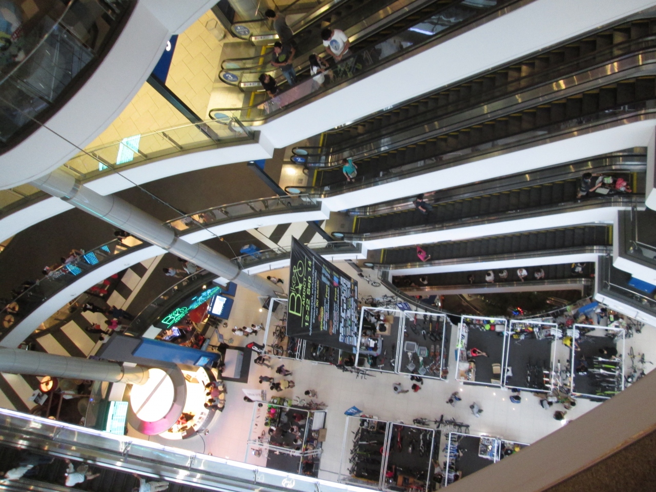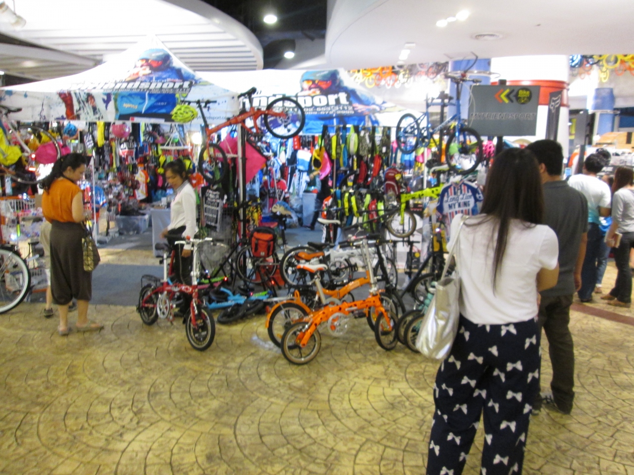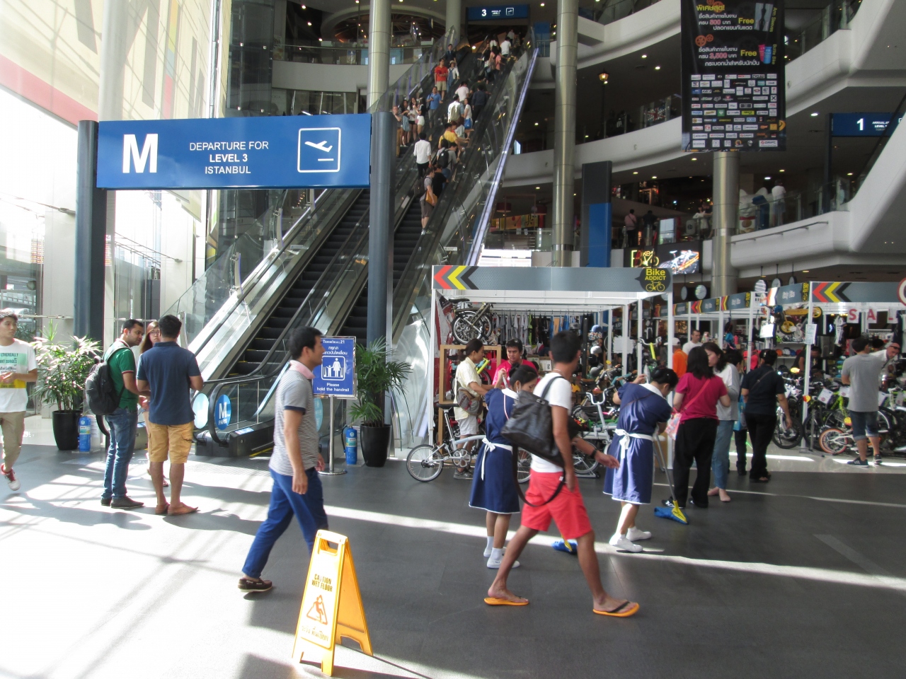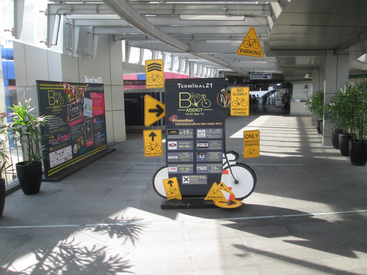 個人的にはサイアムのショッピングセンターより好きです。混雑していますがサイアムほどではありません。滞在中はショッピング、飲食で良く利用します。8月のターミナル21は自転車フェアが開催されており、M階から地下まで自転車一色になっていました。