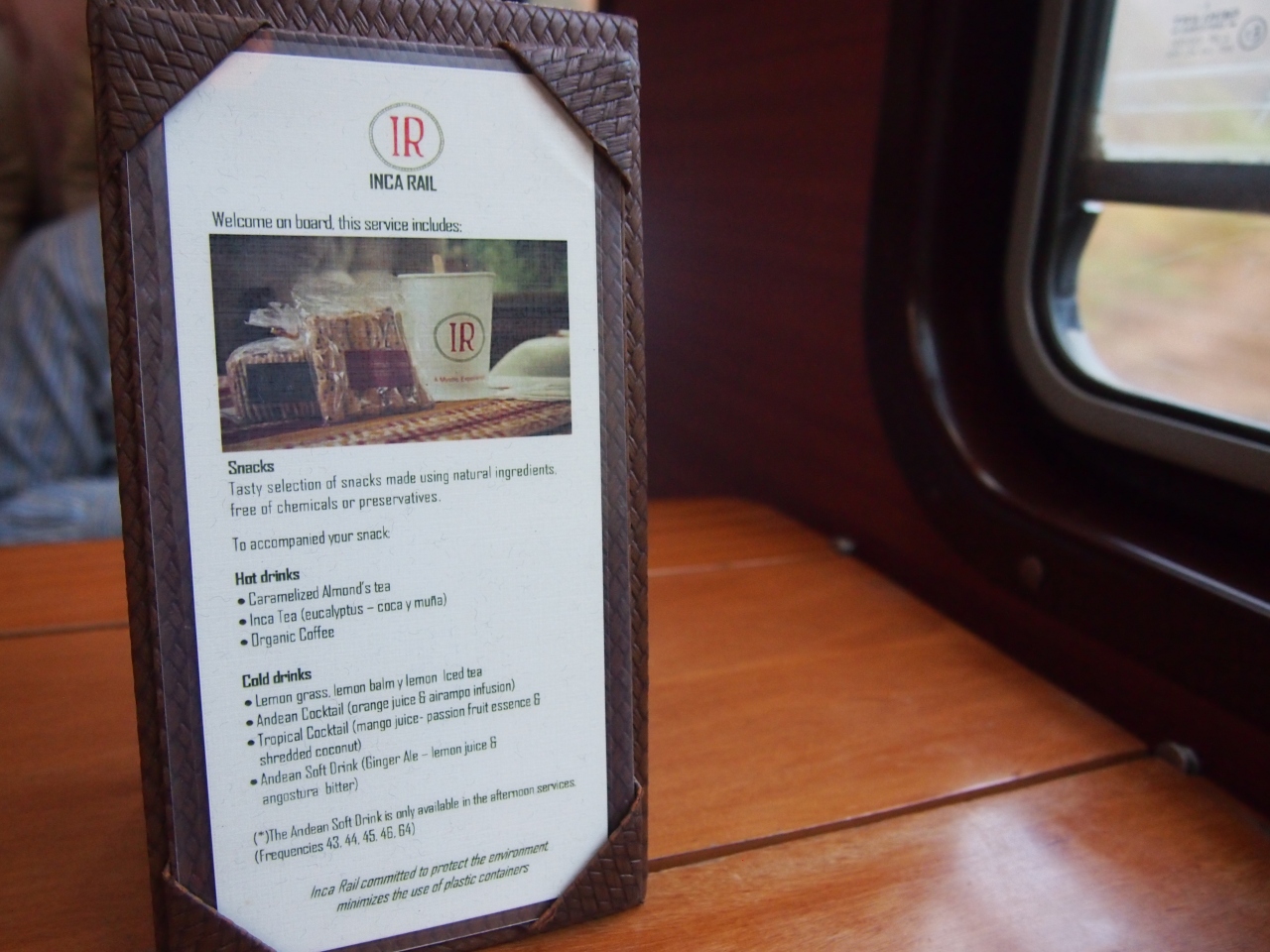 予約時にパスポート番号を入れているので、乗車時に乗車券とともにパスポートを見せます。座席はふかふかのシートで快適でした。途中でスナックとともにドリンクサービスがあり、メニューから選ぶことができます。行きは日本では飲めないコカ茶を、帰りはレモングラスを選びました。