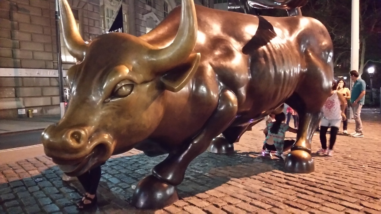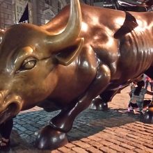すごく大きくて今にも走り出しそうな牡牛はあちこち撫でられたのか