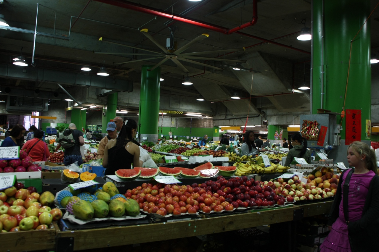 チャイナタウンのマーケットシティー1階で開かれているマーケットです。イメージとしては屋根付き露天といった感じでしょうか。服、雑貨、小物、野菜、果物など、日用品が手頃な値段で手に入ります。アジア系の人(特に中国系)のお店が多かったです。品揃えは豊富ですが、購入するかはその人次第だと思います。
