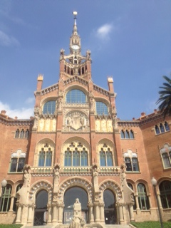 サグラダファミリア見学後、ガウディ設計の並木道を20分ほど歩いて行きました。正面の建物も圧巻でしたが、中に入ると広い敷地の中に元病棟があり、壁は煉瓦作りですが、屋根の装飾が素晴らしいです。団体客は全く居らず、ゆっくり見れます。入り口の左手にカフェがあり、飲み物とピンチョスを注文して、テラスで頂きました。サグラダファミリア見学後、時間の取れる方は絶対お奨めの建築物です。