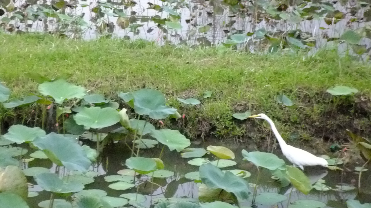 蓮がある池をめぐって、いろいろな不思議な建物が建っている。有名なのは、竜と虎の塔だが、他にも竜の上に観音様が立っている塔や、大きなお寺など、池の回りにカラフルなものがたくさん建っている。おみやげやさんや食べ物やさんなどもあるので、いかにも観光地という感じである。