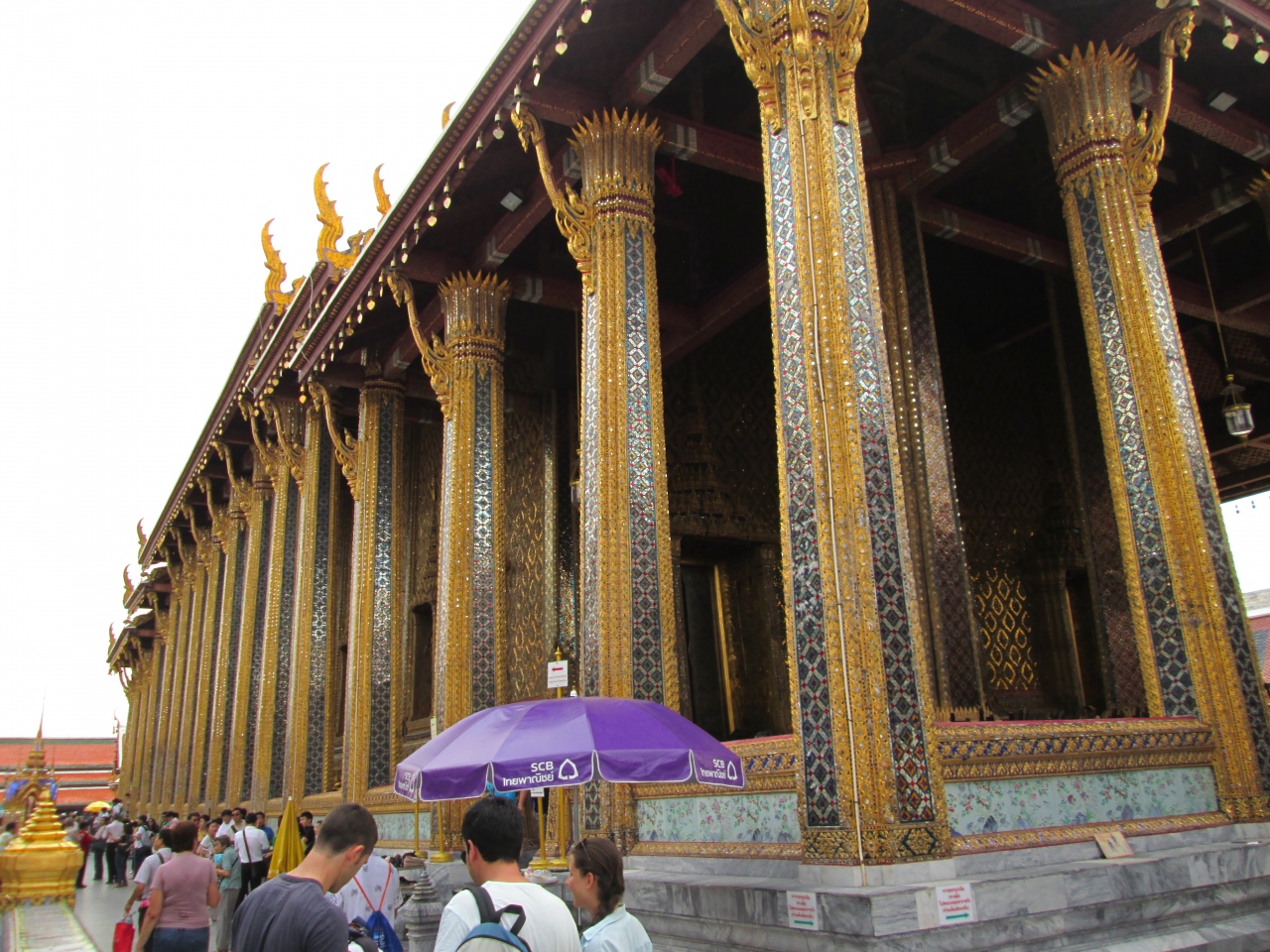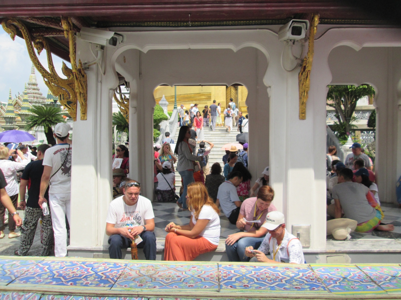 ワットプラケオ内にあるお堂です。ワットプラケオ内にはいろいろな建造物があり区別がつきにくいですが、観光客が休憩しているポイントが目印です。週末の訪問でしたが、本当に観光客が多くごった返しており撮影しづらかったです。