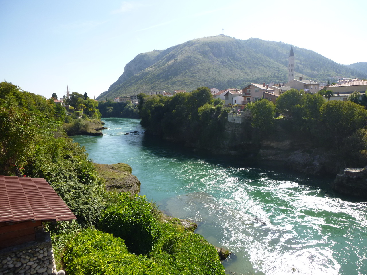 モスタルのバスターミナルからゆるい坂を下っていくとネレトヴァ川に着きます。