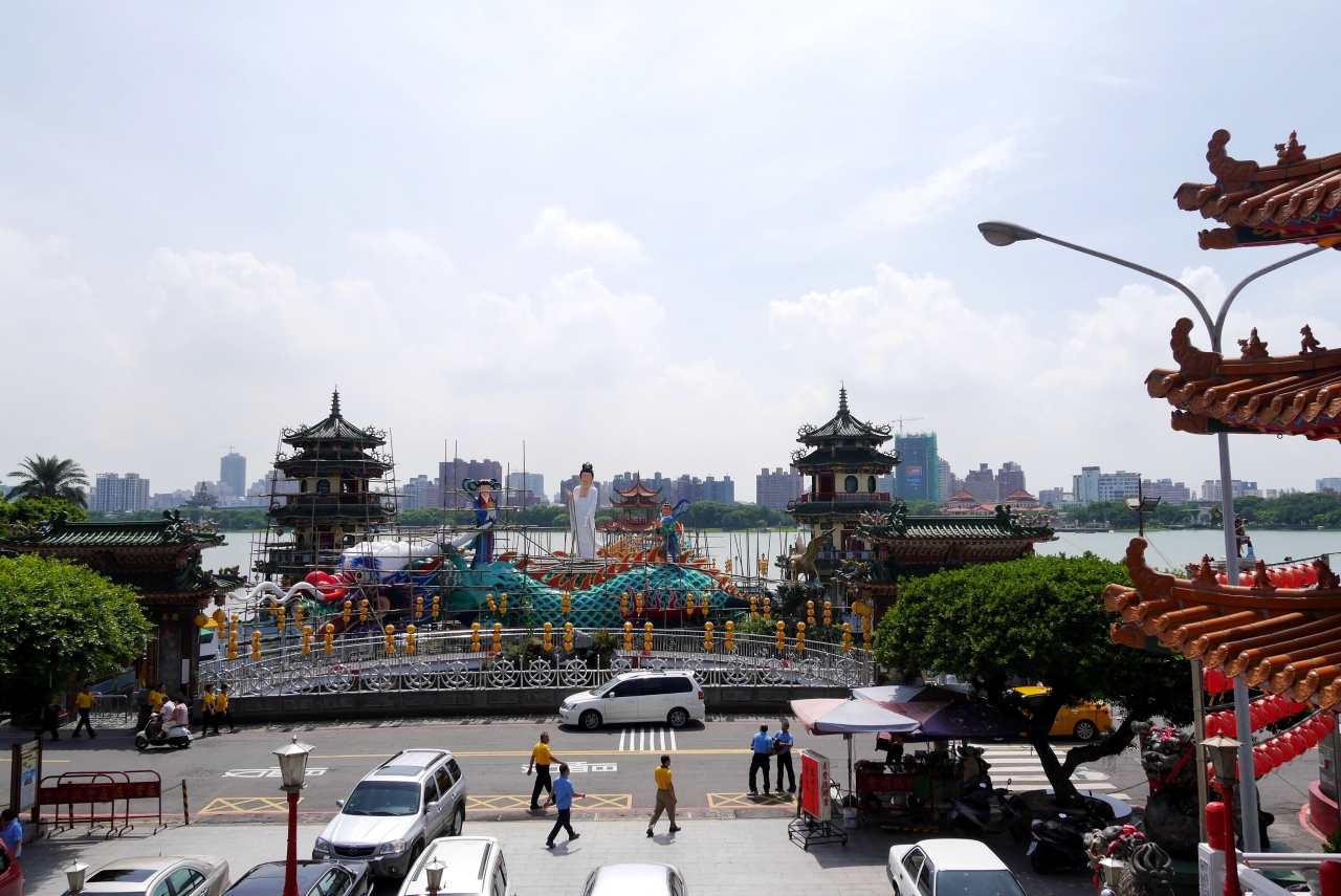 龍虎塔の北隣にある.観音様が竜に乗っている騎龍観音像がある.春閣,秋閣の二つの塔がある.龍虎塔より前1953年に作られた.先に五里亭がありここから龍虎塔や元帝廟北極帝の景色もいい.前に啓(この字ではないが)明堂があり,鄭成功と関羽を祀ってある.まずタクシーで龍虎塔をめざし,歩きながら帰りによるとよい