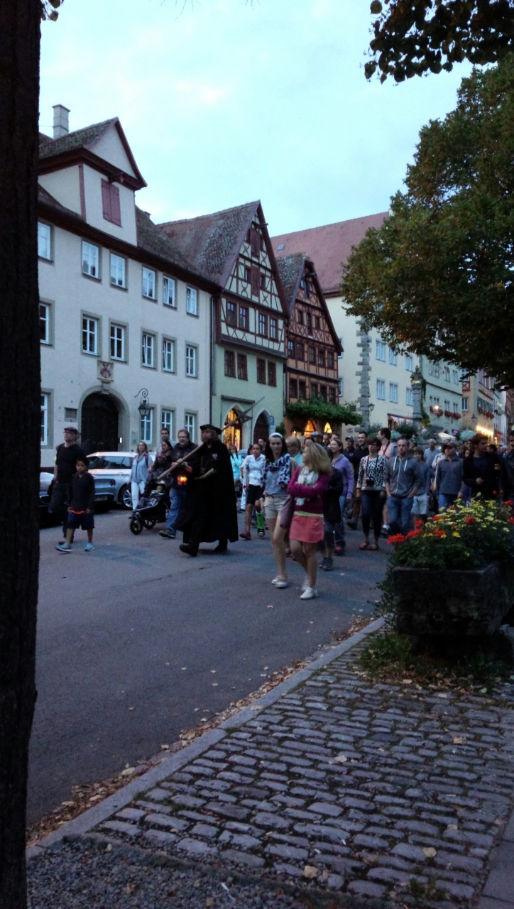 夜8時に市庁舎前から出発する夜警ツアー。かつての夜の街を守っていた夜回り番人に扮したツアーガイドが街を案内してくれます。ホテルのスタッフがガイドのジョークが楽しいから参加してみたら?と勧めてくれたので様子を伺ってみました。