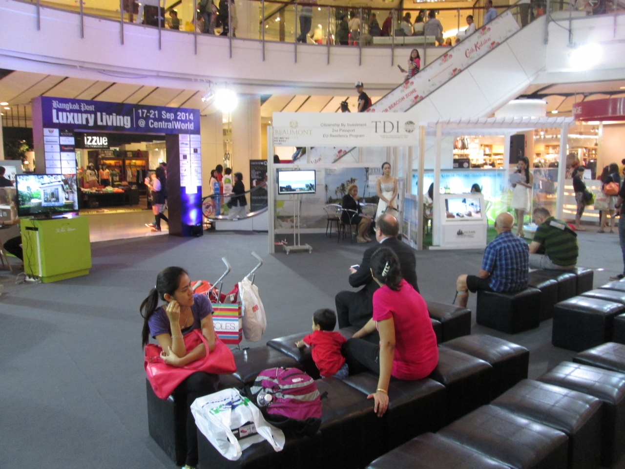 館内ではいろいろなイベントが開催されています。訪問したときは1階の特設ブースで不動産関係のプレゼンテーションを行っていました。バンコクでは建設ラッシュで新しいビルが建設され、少しづずつ物価上昇が発生しています。