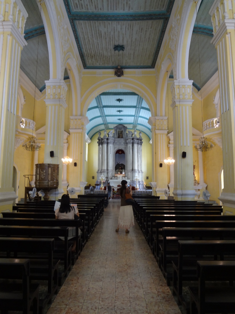 外観もクリームイエロー、中もクリーム色の素敵な教会です。