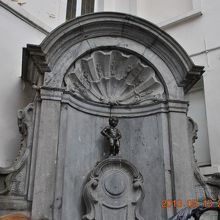 グランプラスからの路地を抜けると鉄柵の前にいつも人だかりがあり、通り過ぎることはありません。像は意外に小さく格別の特徴はありませんが、多くの着せ替え用の衣裳には日本から寄贈された鎧兜があるとのこと。この日はスタンダードな衣装でした。