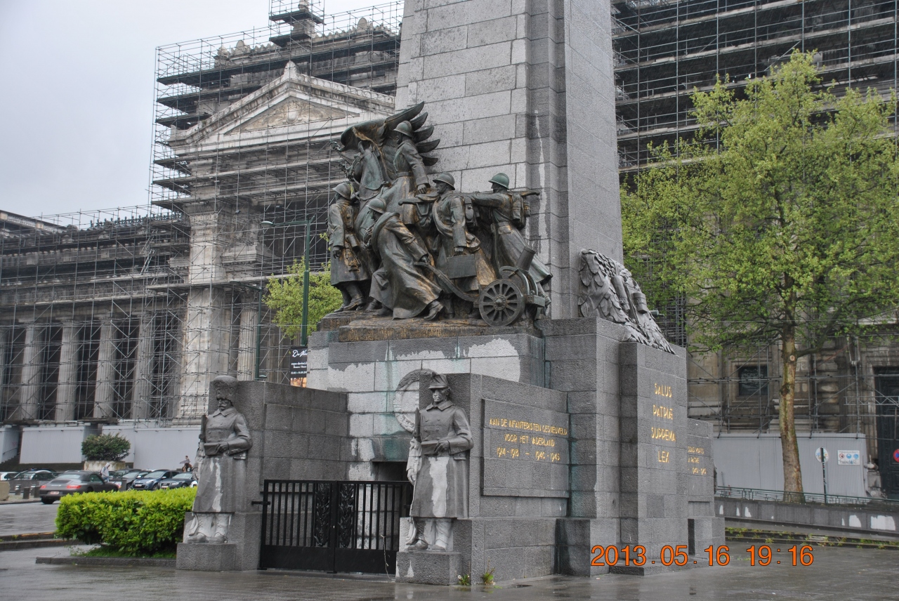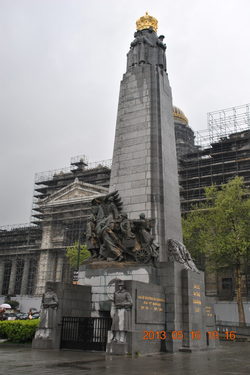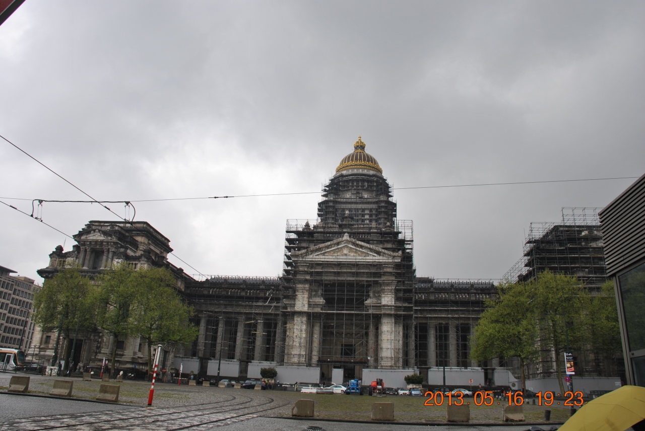 地下鉄のPorte de Hal駅から10分ほど歩き、エレベータで裁判所の前の広場に出ました。市街を見渡せる高台にあり、中世の絞首刑場跡に造られ、1883年に完成した欧州の裁判所としては最大級の建物です。建物は修復中のようで、全体に足場が組まれており、小雨模様で5月なのに肌寒く、早々に立ち去りました。