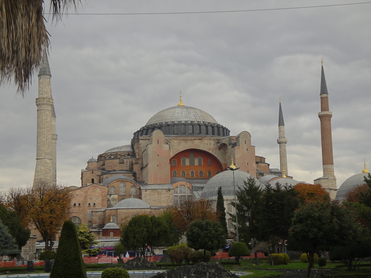 旧市街に建つ著名な観光地のひとつです。ブルーモスクほどの内部の美しさはありませんが、それでもモスクの巨大さと尖塔の高さには目を見張るものがあります。個人的な感想ですが時間が限られているなら内部を見るならブルーモスク。アヤソフィアに関しては外観を眺めるだけでもよかったかなと。