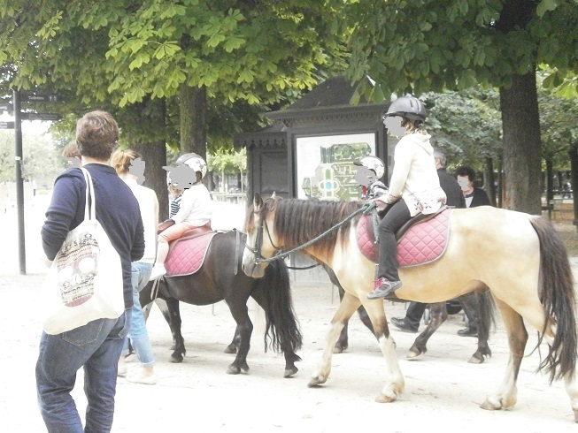 豪華な宮殿がある一方で、広い園内には、花壇、彫刻だけでなく、池あり、テニスコートあり、子供用の遊具広場まであります。なかでも、子供たちが馬に乗ってコースを回る企画(指導者が手綱をもって歩くのみですが)もあって、観光客だけでなく多くの市民が来ています。遊具やテニスコートのような施設が木々の向こうにあって、区分されていることも効果的なのかもしれません。華やかな公園を期待する人には、物足りないかもしれません。