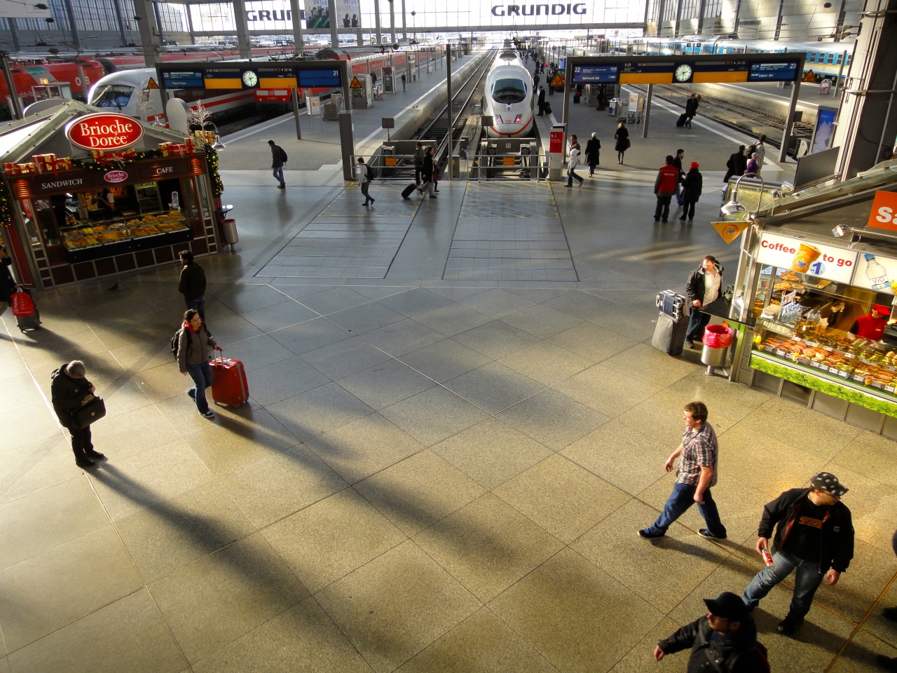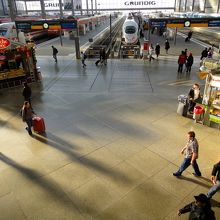 ヨーロッパの中央駅らしく頭端式のホームがずらりと並び大屋根に囲まれている様は旅情を否が応でもかき立てられます。列車はひっきりなしに発着しているので見ていて飽きません。ただし乗る列車の発着番線が結構頻繁に変わるようなので電光掲示板は要チェックです。