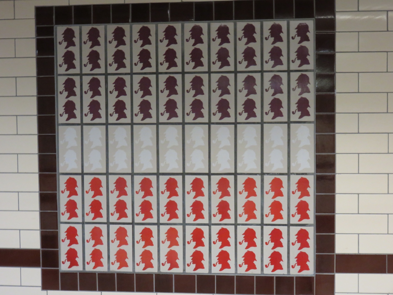 駅のレンガにはシャーロックホームズが描かれており、駅を出ればシャーロックホームズ像があり、少し歩けば