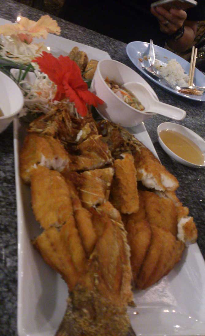 パタヤの近く、シラチャ(Si Racha)にある海沿いのタイ料理レストラン。地元の外食や接待に使われています。幹線道路から海に向かって細い道を入って行くレストランは数件ありますがここはこじんまりしています。味はオーソドックスですが上品な味付けです。