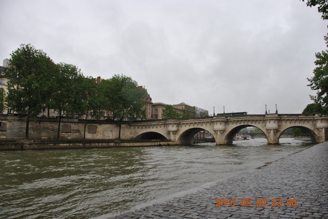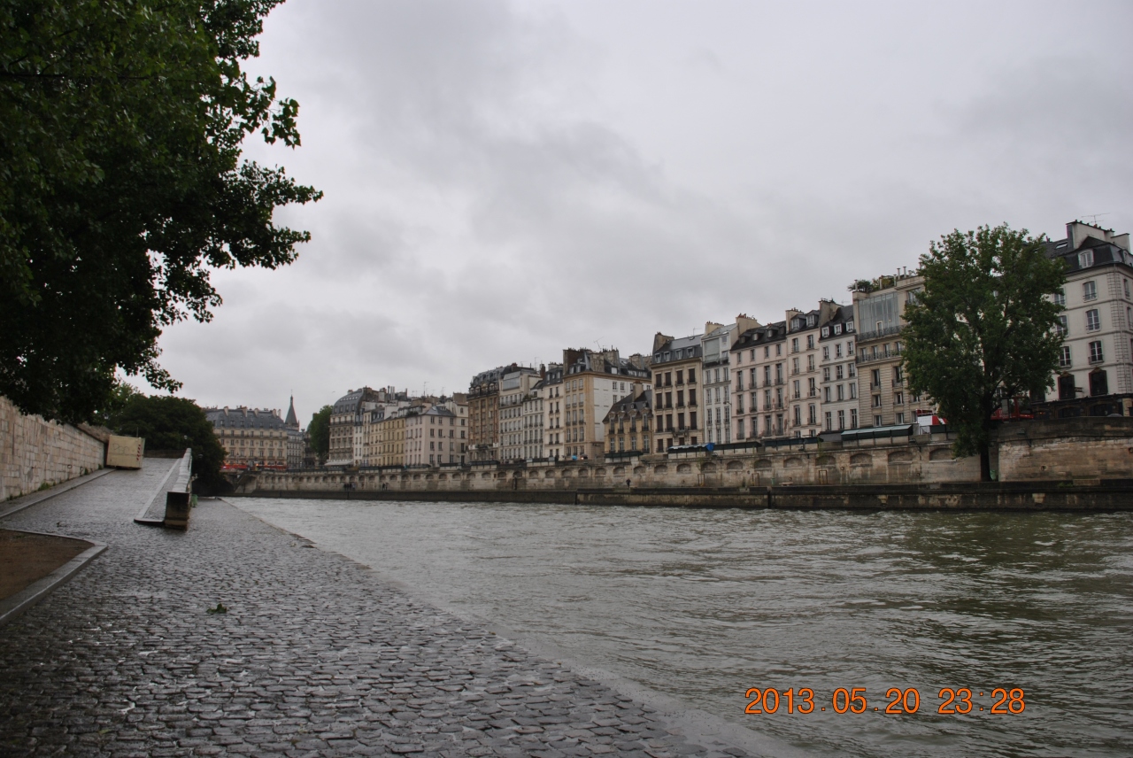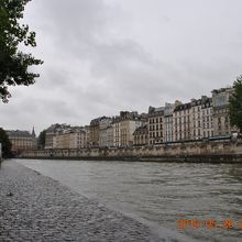 セーヌクルーズ船の発着場であるポンヌフと、地下鉄シテ駅との間を雨の中を歩きました。両岸にはパリらしい建物が立ち並び、車が多く行き交いますが、川辺の散歩道に降りると静かで、人影もなく穏やかな時間が過ぎて行きました。セーヌクルーズよりも記憶に残るひとときでした。